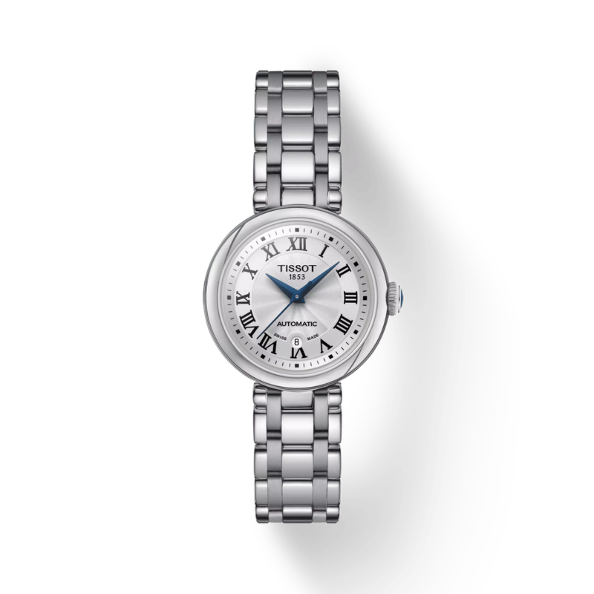 This exquisite timepiece marries form and function, catering to today's modern women. Encased in durable stainless steel with a silver-tone finish, it has a round 29mm silhouette for refinement. The automatic movement, powered by the precision-caliber POWERMATIC 48.111, ensures accurate timekeeping. A scratch-resistant sapphire crystal protects the Roman numerals adorning the dial, offering both aesthetic allure and durability.